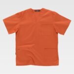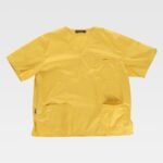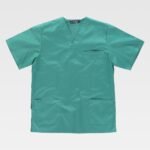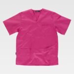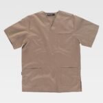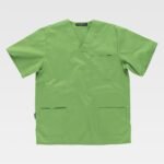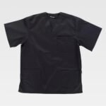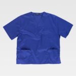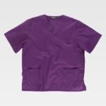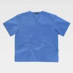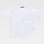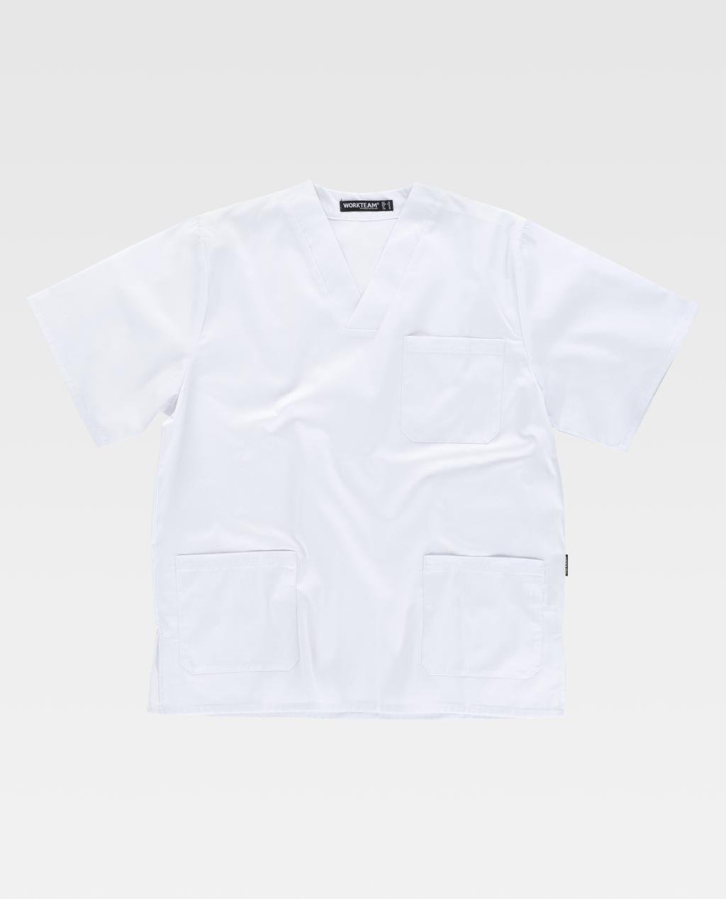 Casaca sanitaria unisex de manga corta y escote de pico cruzado.