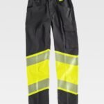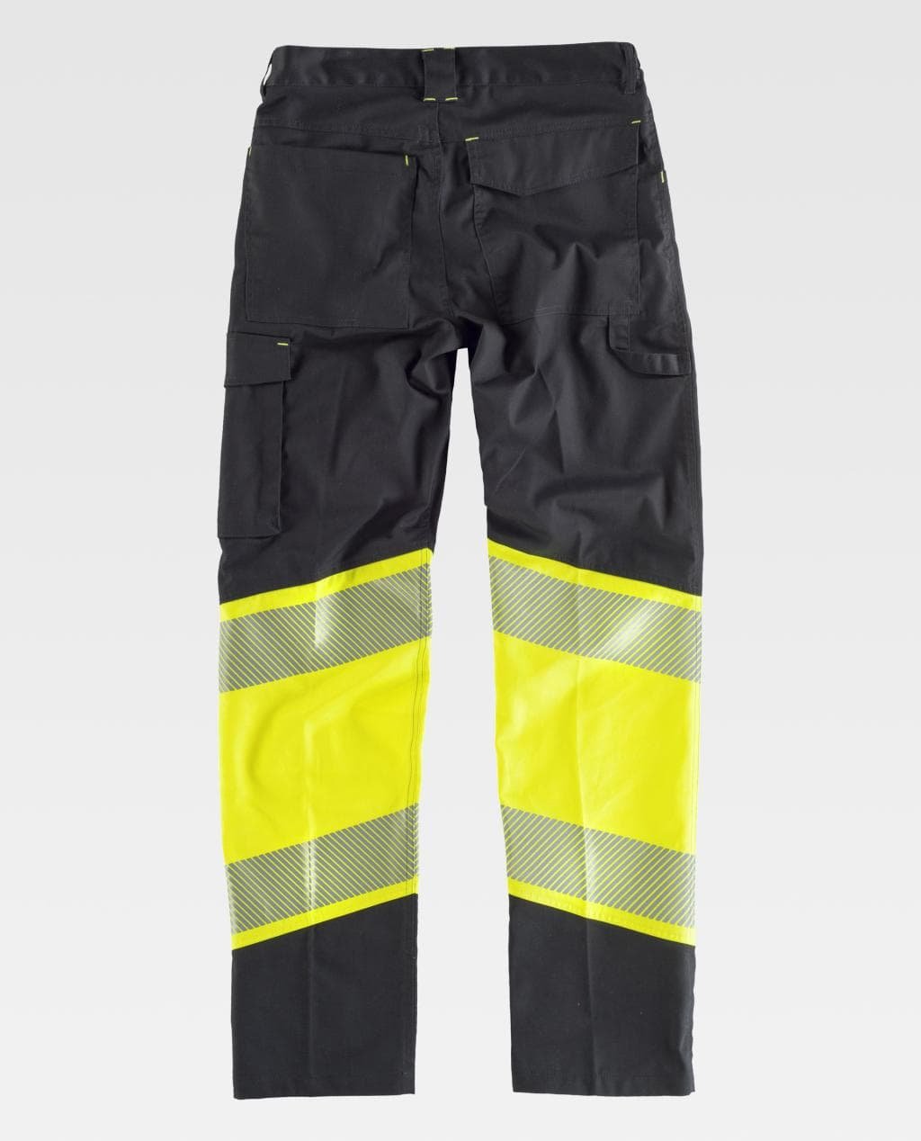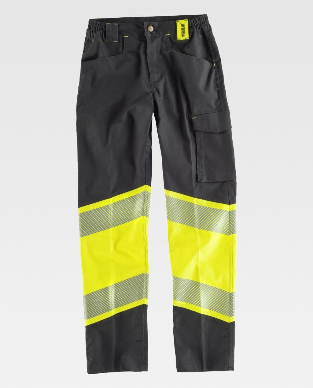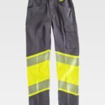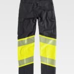 Pantalón de tejido elástico bidireccional por construcción combinado con cintas reflectantes segmentadas.