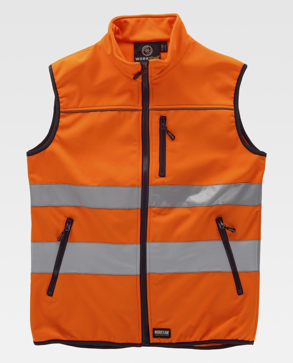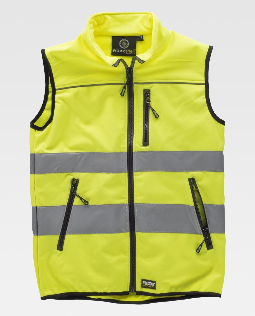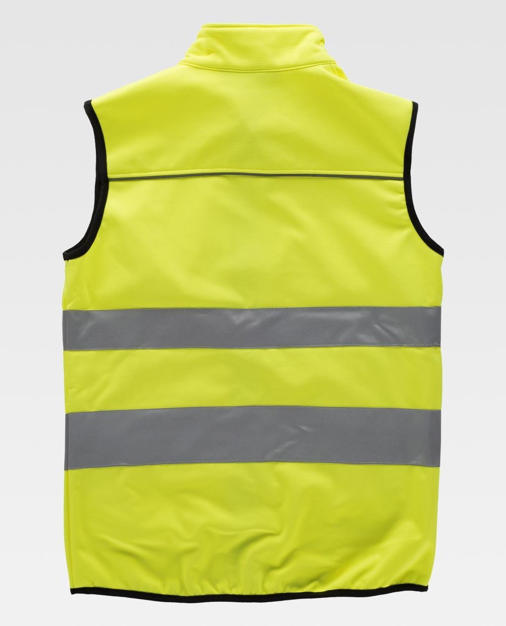 Chaleco Workshell con tejido Ripstop de alta visibilidad con canesús y cintas reflectantes.