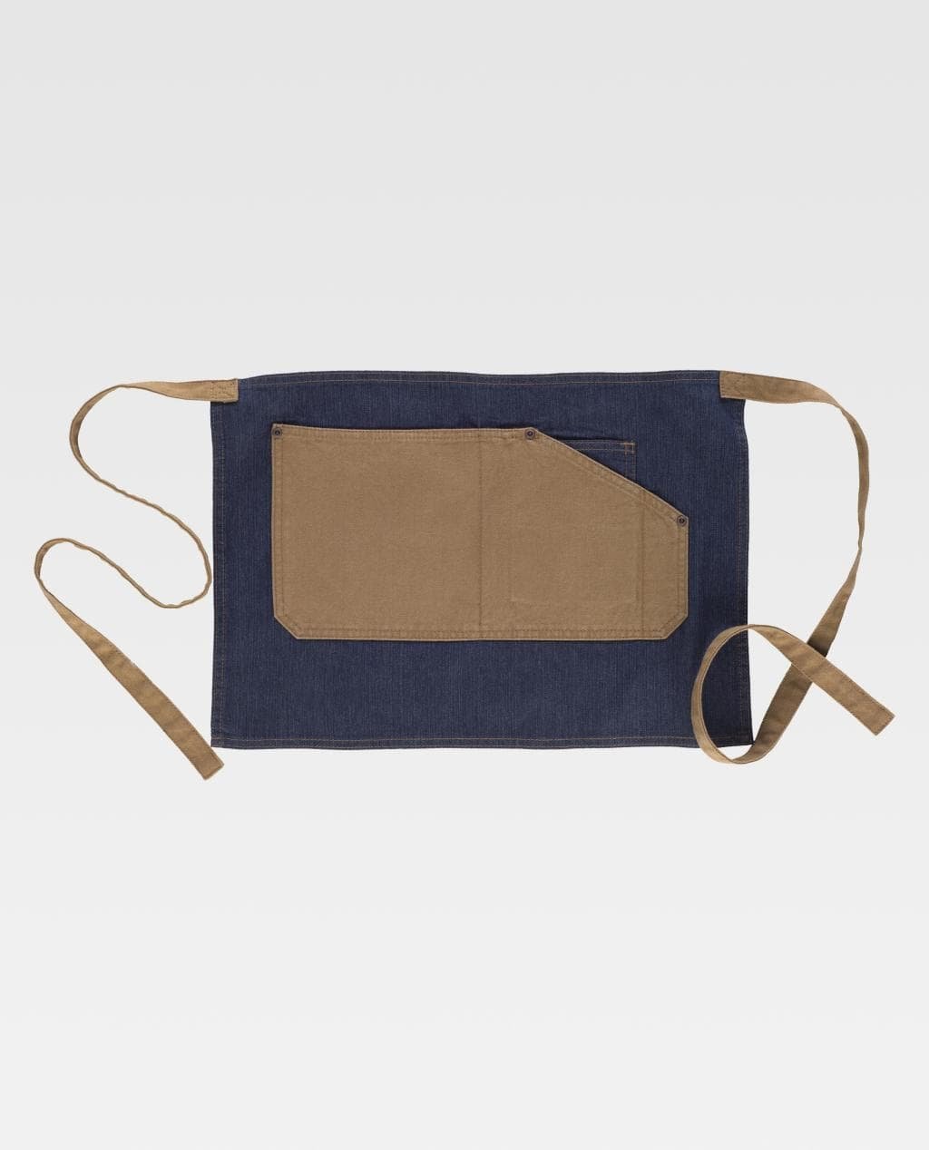 Delantal francés corto en tejido vaquero combinado con canvas.