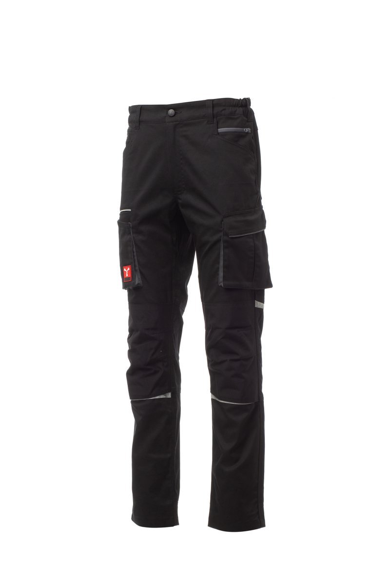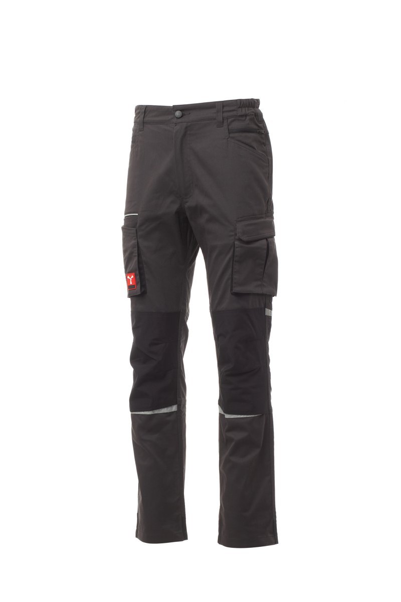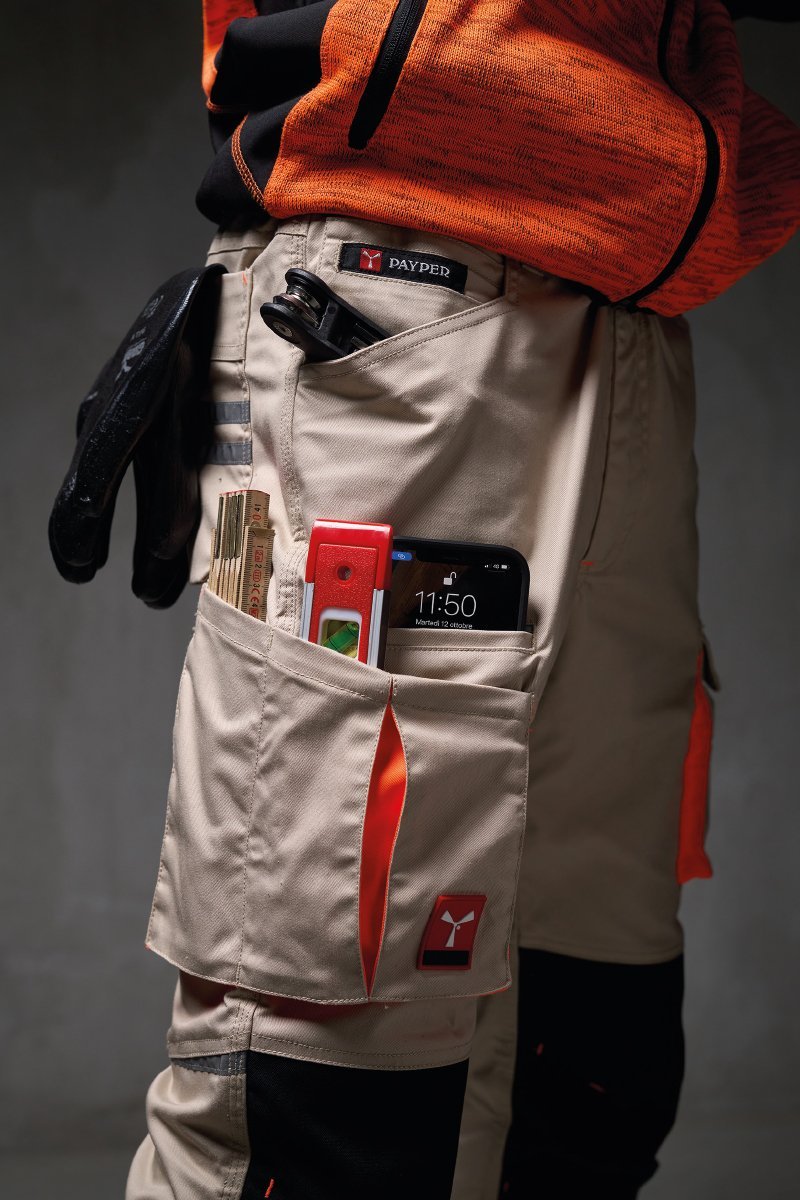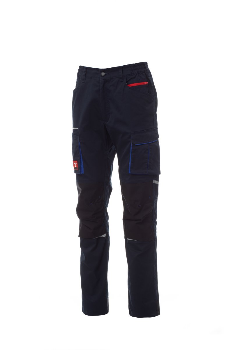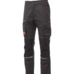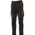 Pantalón unisex de tejido elástico, para todo el año, con elásticos laterales y trabillas en la cintura, cierre con cremallera y botón personalizado. En el delantero tiene dos bolsillos contorneados, un bolsillo pequeño para monedas a la derecha y un bolsillo pequeño de seguridad cerrado con cremallera a la izquierda. En la parte delantera de la pernera izquierda presenta un bolsillo con fuelle, tapeta con cierre de gancho y bucle y soporte para tarjeta de identificación. En la parte delantera de la pernera derecha presenta un bolsillo para el teléfono móvil con borde retrorreflectante y un bolsillo con fuelle. Ambas perneras disponen de bolsillos para rodilleras en Nylon Oxford 500D de tejido en contraste con apertura por la parte inferior y de inserciones retrorreflectantes que indican la apertura. En la parte trasera presenta un bolsillo con tapeta y cierre de gancho y bucle, un bolsillo para el metro (pernera derecha); un bolsillo abierto con dos bandas retrorreflectantes (pernera izquierda); inserciones retrorreflectantes a la altura de la rodilla y cinta talonera de tejido en contraste (ambas perneras). También presenta costuras de triple aguja en la entrepierna y en el interior y exterior de la pernera, y costuras de refuerzo en contraste en distintos puntos.