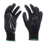 Guantes con revestimiento de nitrilo, puño de punto, poliéster 13G. Características: muy resistentes. Puntos fuertes: confort, resistentes al corte, agarre, sensibilidad, precisión, resistentes a los líquidos.