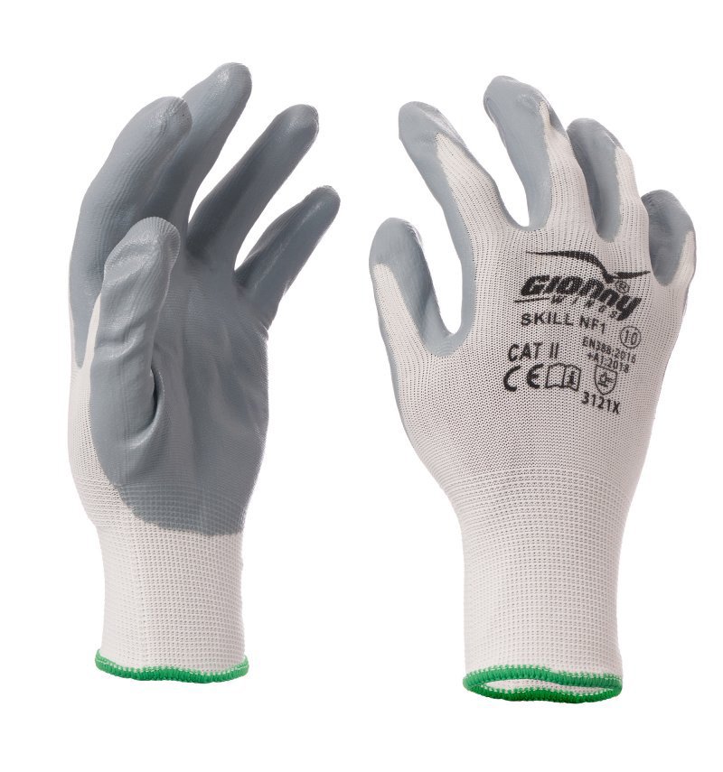 Guantes con revestimiento de espuma de nitrilo, parte dorsal ventilada, puño de punto, poliéster 13G. Características: muy resistentes. Puntos fuertes: confort, agarre, sensibilidad, precisión, resistentes a los líquidos, resistentes al corte.
