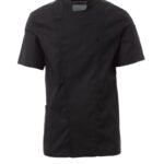 Chaqueta de cocina para hombre con cuello mao, confeccionada en ripstop de algodón y Lycra® T400®, con excelentes propiedades elásticas y transpirables, y con un cómodo tejido de malla en la espalda y bajo la sisa para una mayor transpirabilidad. Cierre cruzado con botones automáticos, la solapa se puede doblar y sujetar al pecho mediante un botón a la vista, creando el efecto de una solapa sastre y un innovador escote en pico. Manga corta con ribete. Emblemático parche contorneado en el hombro izquierdo, con bordado de hélice tono sobre tono, con pequeño bolsillo para bolígrafos. Práctico bolsillo para teléfono móvil en la cintura.