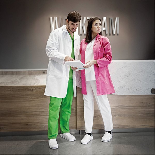 Batas largas o cortas en tejidos cómodos, que aportan una apariencia limpia y profesional, reforzando la imagen de confianza en clínicas y consultas.