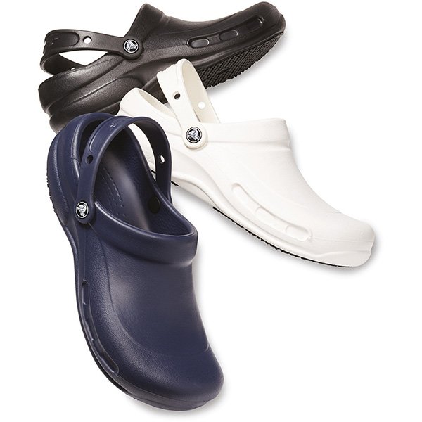 Zuecos y calzado diseñado para permanecer de pie muchas horas, con suela antideslizante y tejido fácil de limpiar.